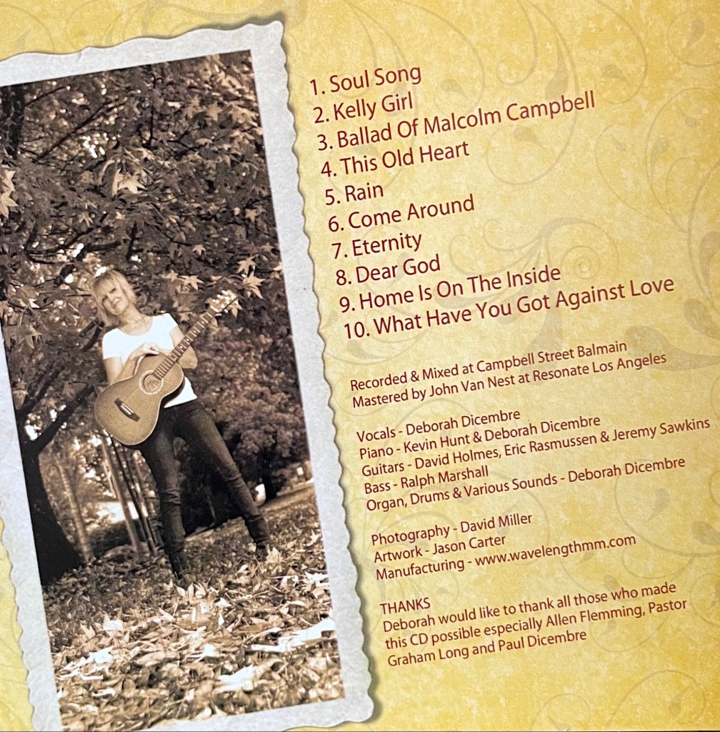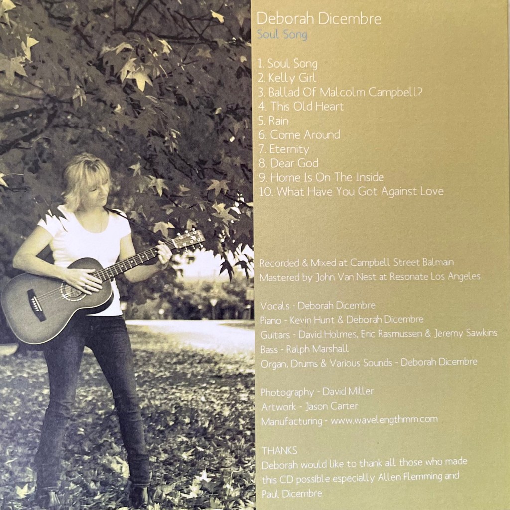 Recorded in Sydney in 2002 . All original words and music by Deborah Dicembre C- 2002 . Songs of life, loss and love . Musicians and personnel listed below the song list.