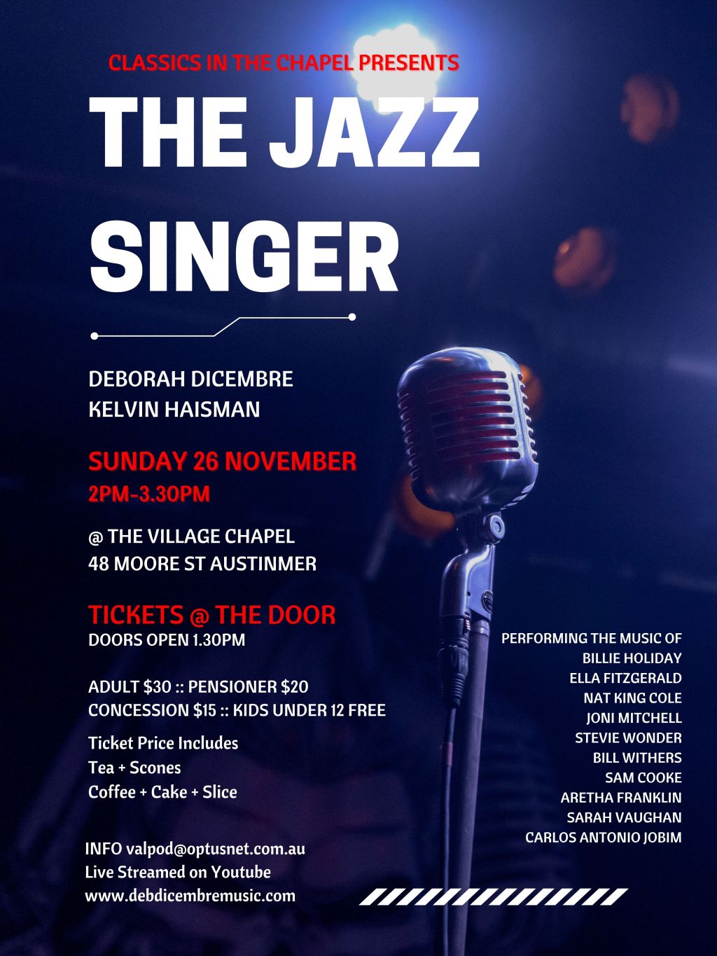 Pianist Kelvin Haisman and myself will be presenting 1.5 hr program of Jazz, Blues & Gospel standards . Plus a few surprises !